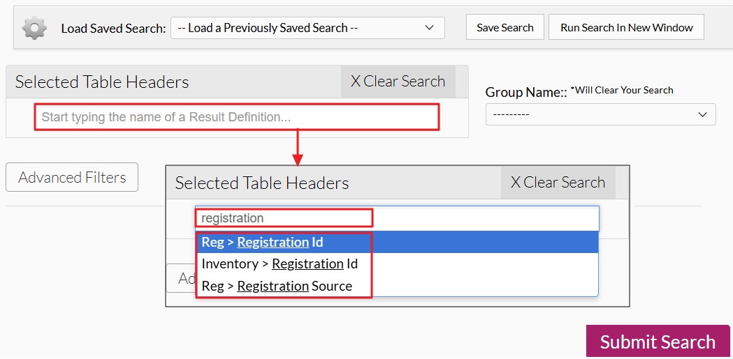 - Select Search Fields