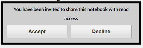 - After returning ownership of a Notebook to the original owner, the Notebook page will prompt you to accept your new role in the notebook (Read Only). To accept this, click on the Accept button.