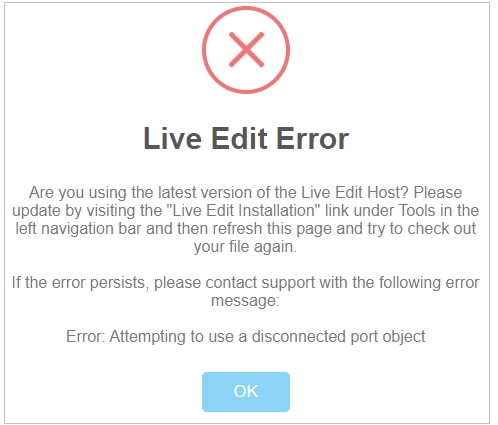 Live Edit ホスト ファイルがインストールされていないか、正しくインストールされていないのに Chrome 拡張機能がインストールされている場合、Chrome で当サイトにアクセスすると、次の Live Edit エラーが表示され、システムを使用できません。 この問題は、Live Edit Chrome 拡張機能をオフにすることで解決できます。