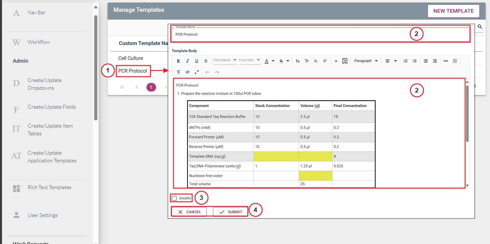 Note: Please see the Add Custom Templates to Custom Experiment Configuration User Guide for information on adding Custom Templates to Custom Experiment Fields.