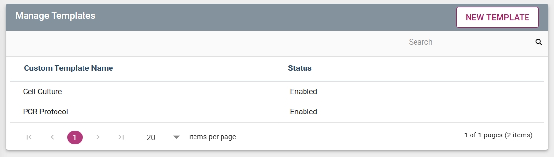 It is recommended to search the name of the custom template using the Search function, prior to creating and saving, to ensure uniqueness (see note below).