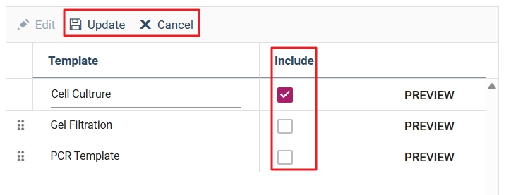 - Check the box in the “Include” column, press the “Update” to save the change. If you don’t want to save the change, press “CANCEL”.
