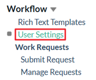 - In the Work Orders section of the left navigation pane, click on User Settings