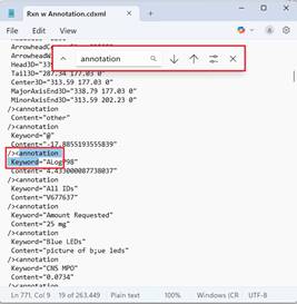 - Go to “Edit” -> “Find”. Search for the “annotation”. Select all “annotation keywords” entries and delete them.