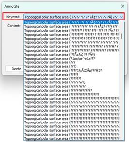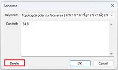 - For ChemDraw version 22 or older, in the keyword field, select each undesired annotations individually and click the “Delete” button to remove it.