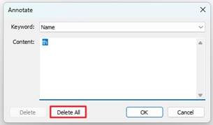- For ChemDraw version 23 or newer, click the "Delete All" button to remove all annotations at once.