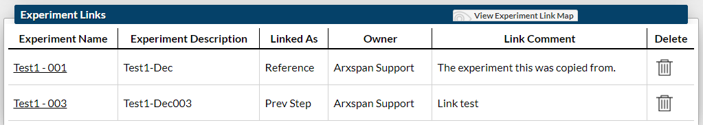 エクスペリメントには複数のエクスペリメントにリンクする(またはリンクしない)ことができます。