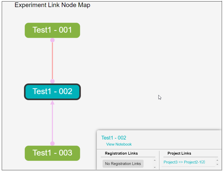 ⑥ 「リンクを作成(confirm link)」を押すとと、リンクがエクスペリメントリンクテーブルに表示されます。これと同時にエクスペリメントリンクマップにもこれらの関係が反映されます。