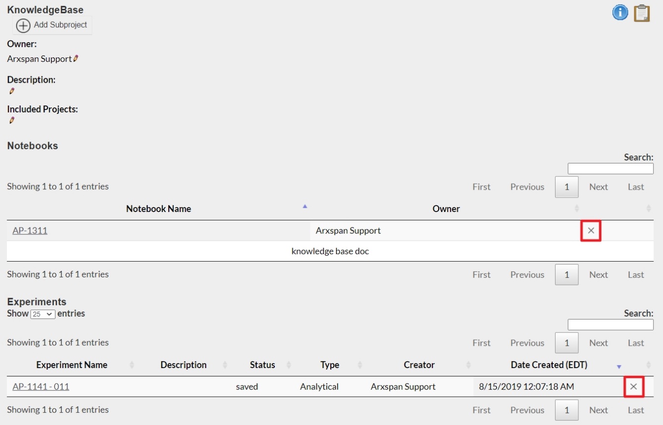 Removing an Experiment or Notebook from a Project: